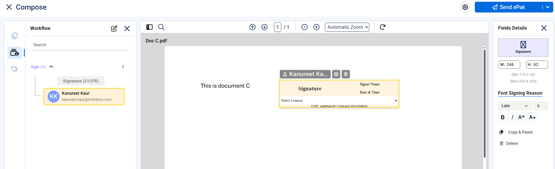 MSB application provides the provision to copy paste any tag from panel on the document when a tag is dropped. To copy paste the dropped tag: