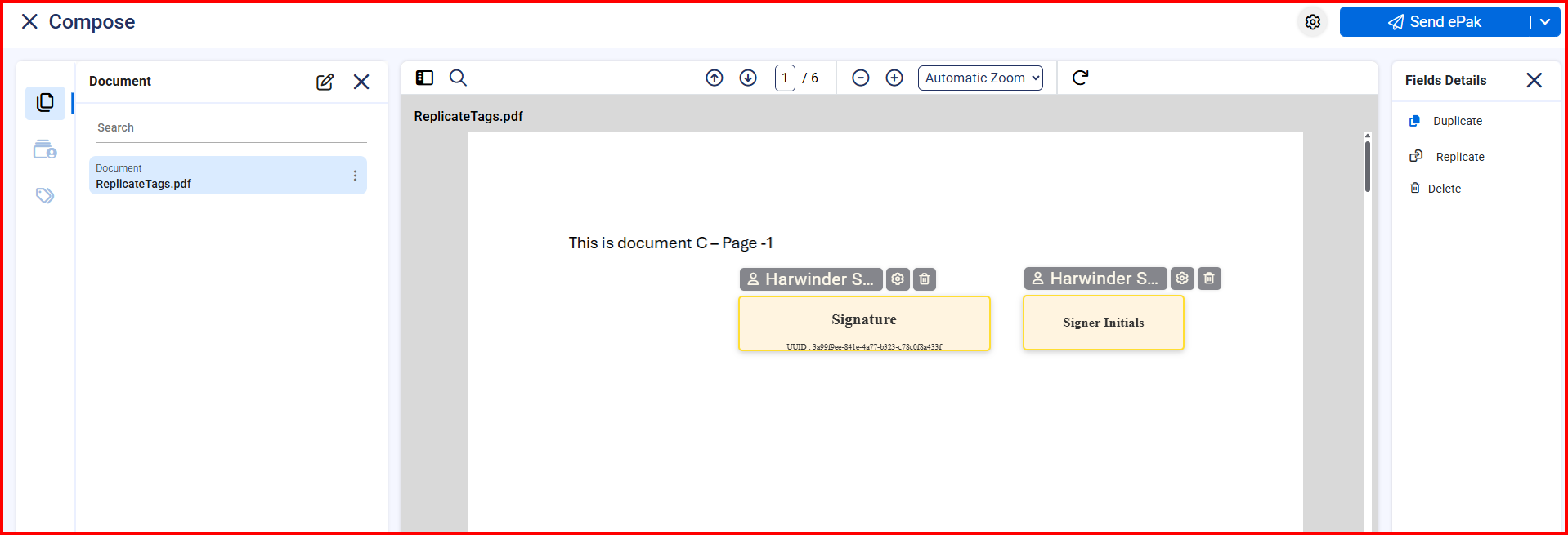 Can I Replicate Signature/Initials Tag on all Pages