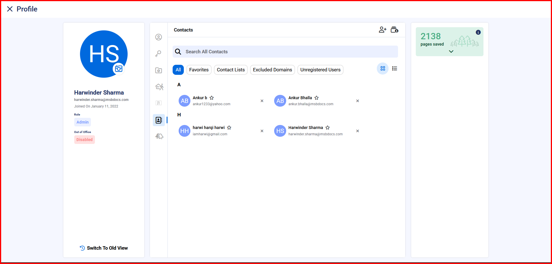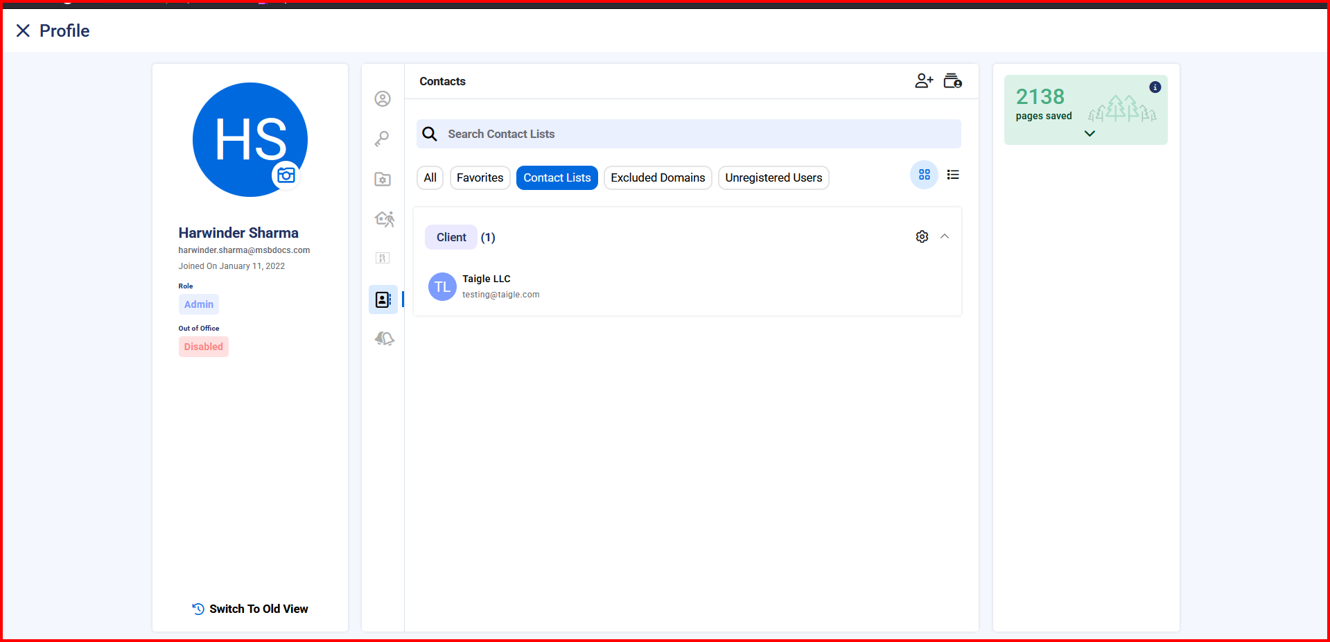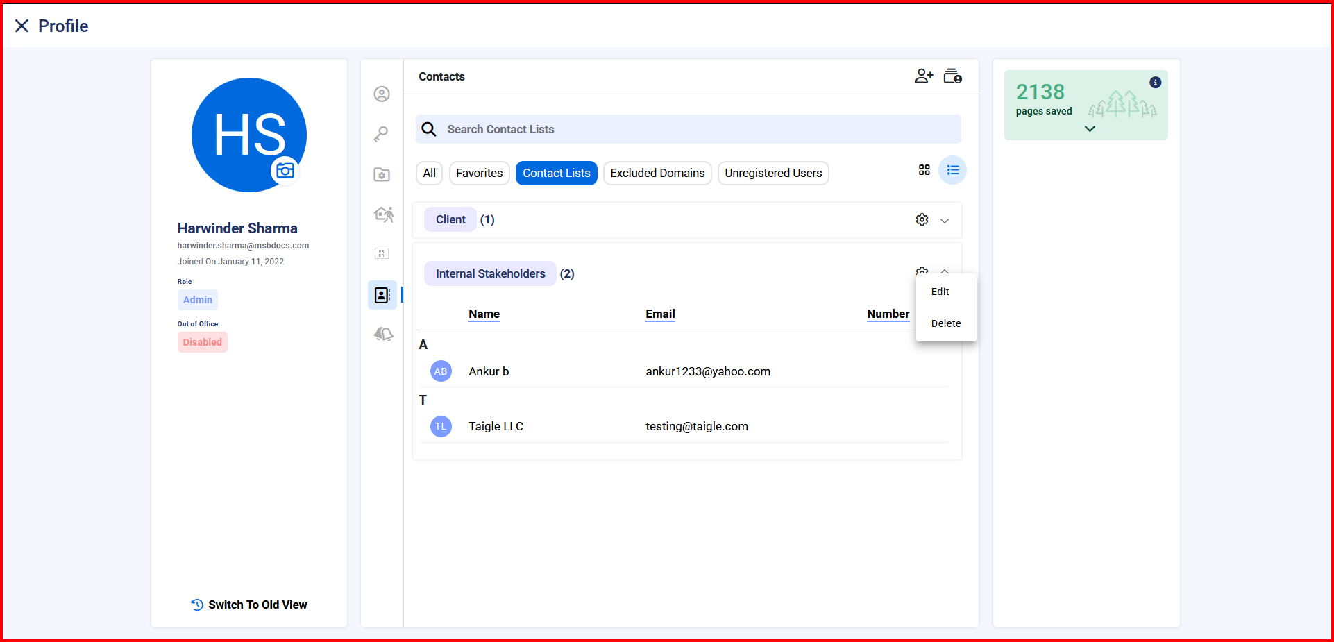 An admin/custodian can organize their contacts by creating contact lists within their contacts and include users from excluded or external domains, providing flexibility in selecting recipients and simplifying the process of sending epaks to multiple recipients simultaneously. When a new contact list is created, the same will be visible under the contact lists filter.