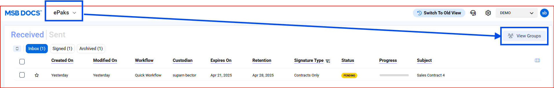 As a custodian, you will have access to view your Groups and the ePaks associated with it. Click on ePaks on the Dashboard and you will see an option to ‘View Groups’.