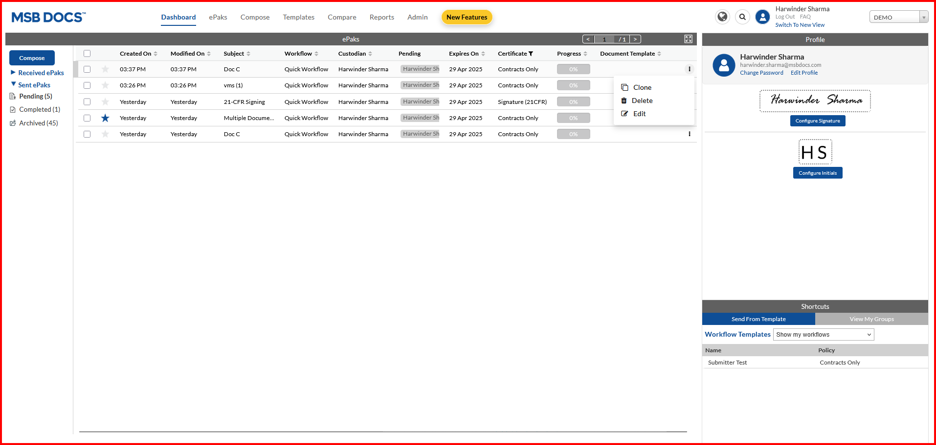 Go to the Pending Folder and select an ePak. Click on the 3 dots and choose Edit. Users will be asked to confirm if they wish to edit the ePak.