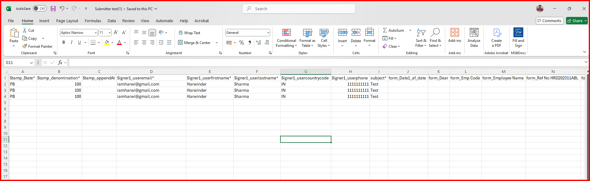 If the user decides to include stamp paper, the CSV will change to a format that includes stamp paper details. If the user selects the quantity of the stamp paper, the same number of rows will be added to the CSV. All the same types of stamps will come together in any order.