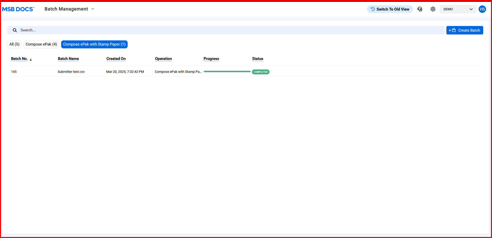 MSB users will now be able to export the bulk compose with Stamp paper CSV file and make changes to the CSV file and upload again, if the tenant is so configured. If the stamp paper feature is enabled, the user will be able to see the button with the text ‘select stamp papers’ which allows users to view and select different stamp papers assigned to the custodian.