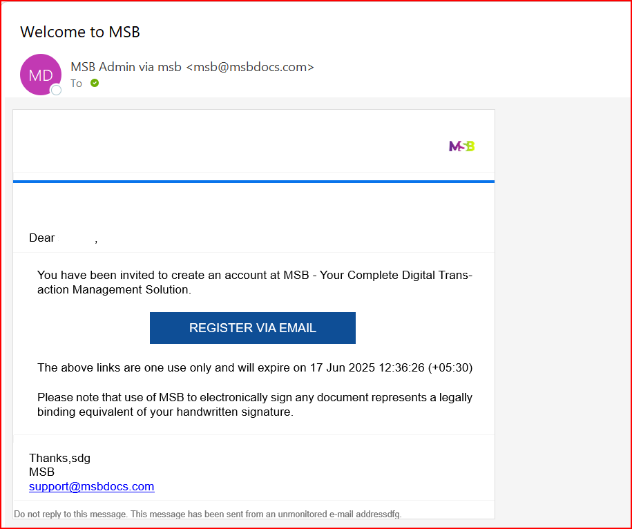 Admin may send you an invitation to access the application. In case of an Admin Invite, the Admin decides which role your account shall have, however if invitation has been received via ePak signing/delegation, the default role will be that of a Signer unless specifically configured on client request. The default role can be upgraded by a request to your Administrator. Upon receiving an invitation email, please click the register tab to begin the process.