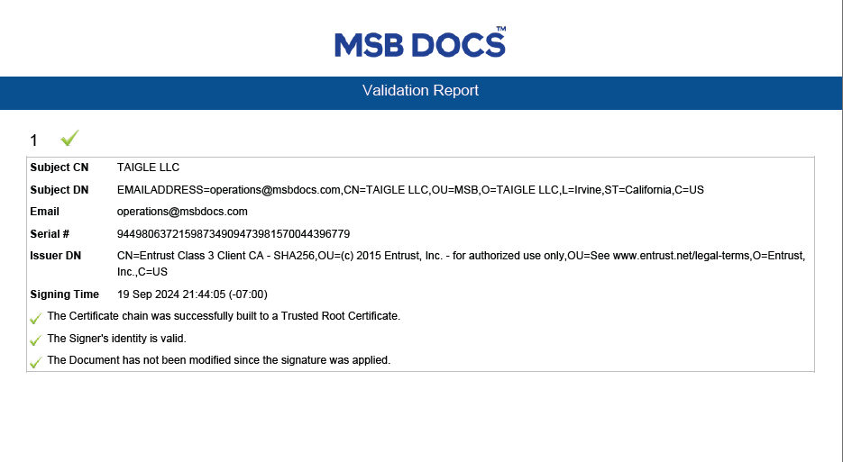 - On the second last page of the e-Photocopy there is a validation report which will contain information about the validity of the document.