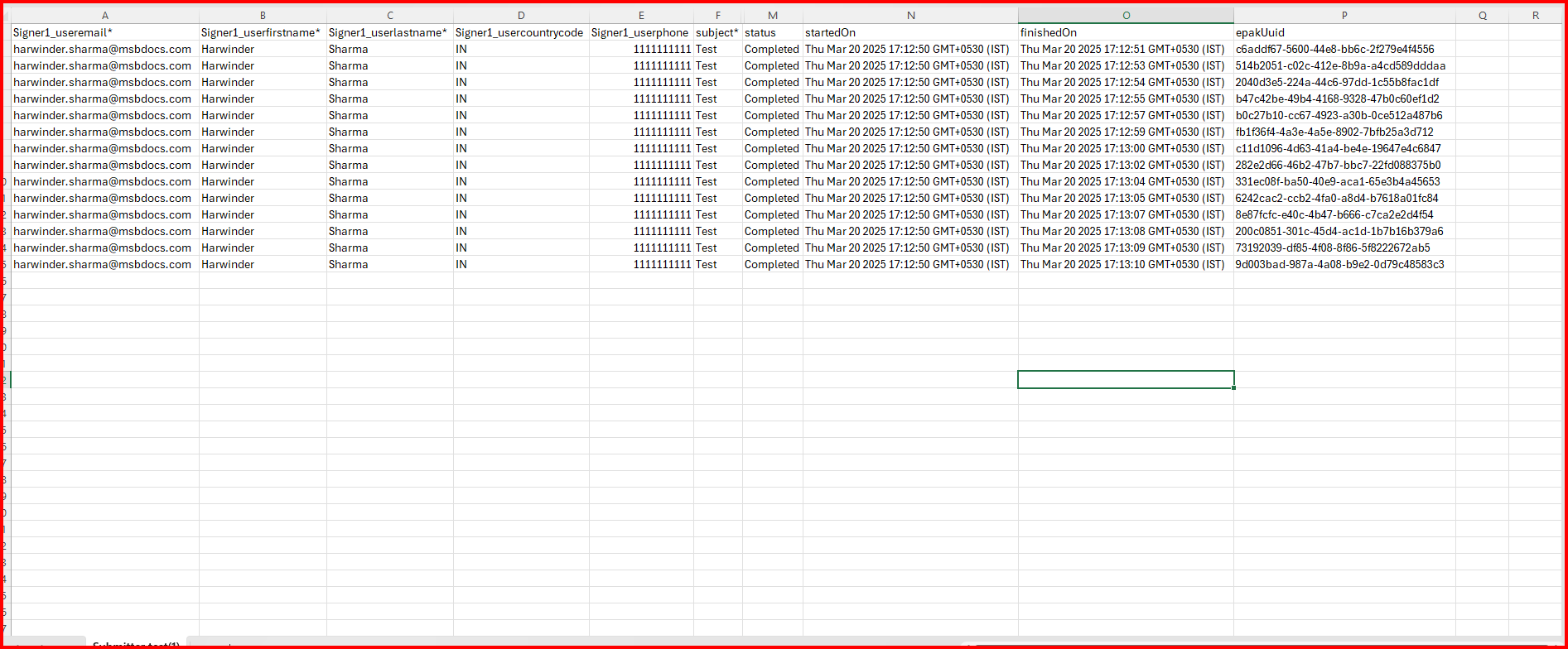For each individual entry, the custodian will be able to Download CSV Report and see the details like ePak Subject, Signers, Index, Status, started on and Finished On.