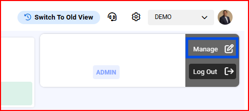 On the dashboard page, Click Manage in the top right corner of the screen. User will be navigated to the Profile page and will find an upload icon above the user name to upload the profile picture.
