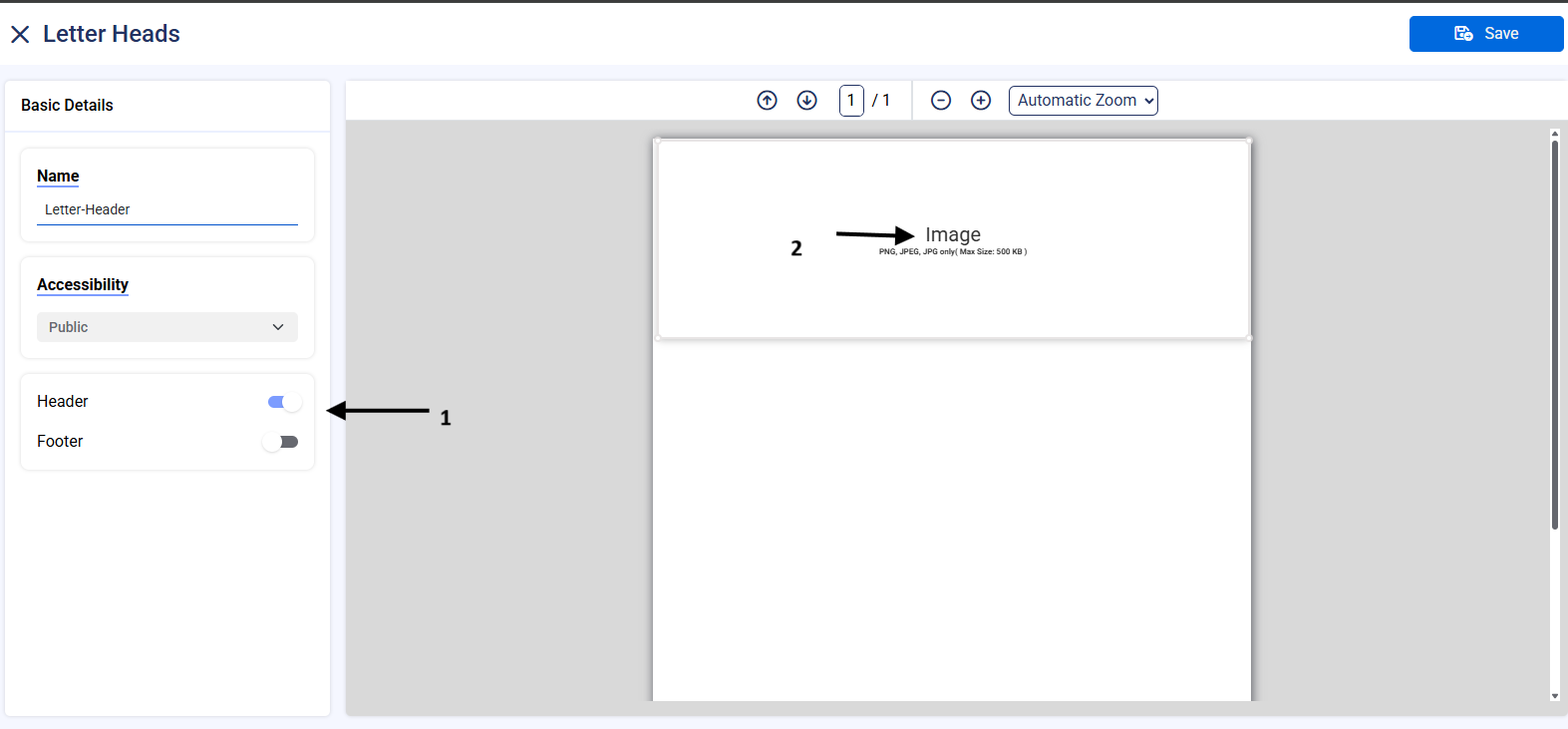 Format supported in MSB Application for Header and Footer is JPEG, JPG & PNG format