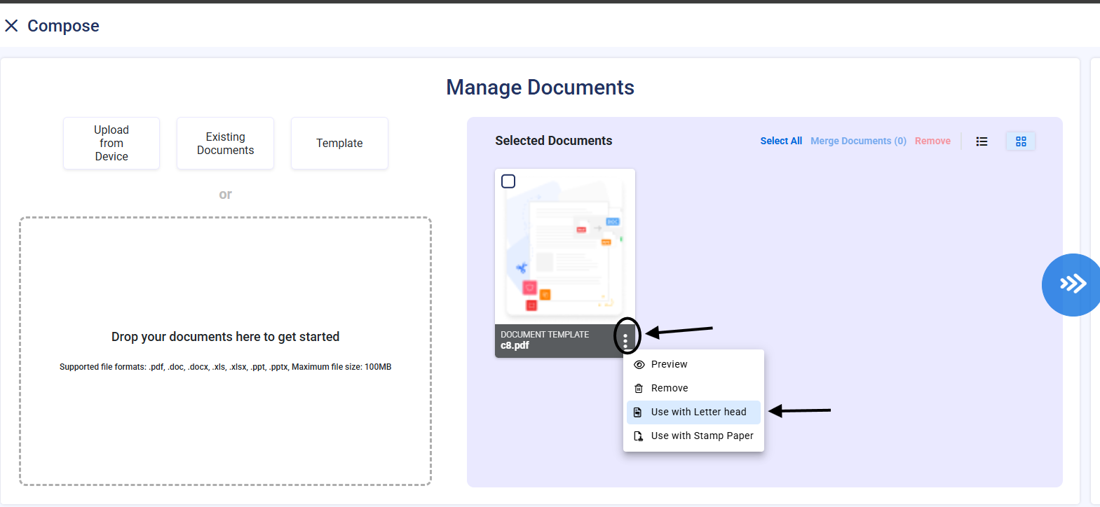 Login to the custodian account and click on Compose. Select Document Templates and choose any document template.