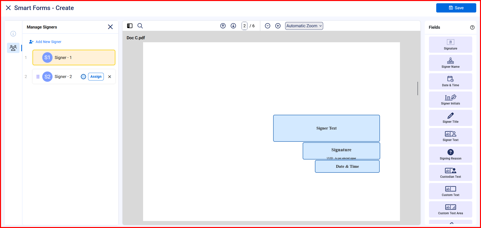 A custodian will be able to add the users in a sequential order in the Smart Forms as in the existing workflow setting. In Smart Forms, only Signing state will be available and as of now, only one user per state can be added. It is not mandatory to add the recipients in the signing state and the first state will always be empty.