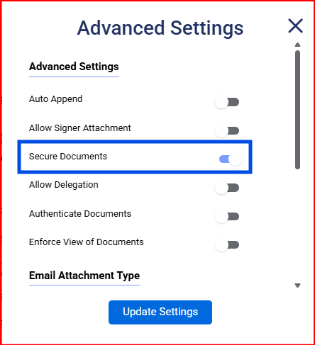 - Compose the ePak as usual and use the ‘Secure Document’ toggle in the Advanced Settings to turn on the feature.