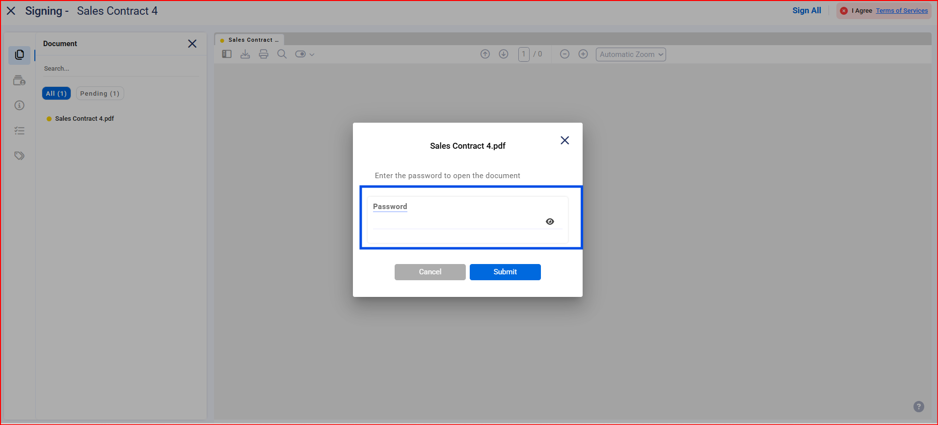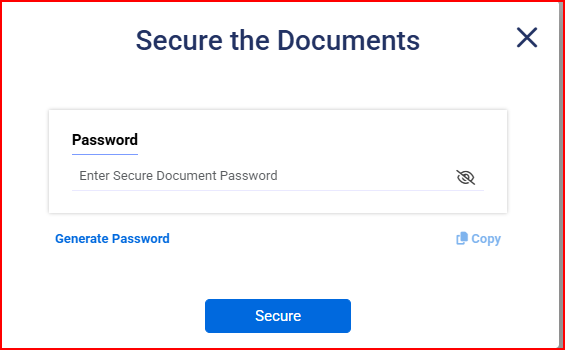 - You will now be prompted to set a password of your choice or let the system generate one for you. You can then copy and communicate the password to all the signers in the workflow. It will also send you the password in a separate email.